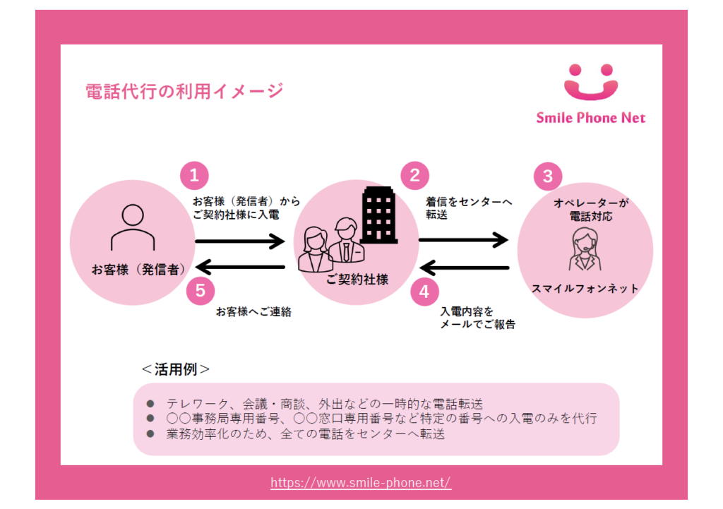 弊社は電話代行サービス「スマイルフォンネット」でBlueBeanを利用しています。