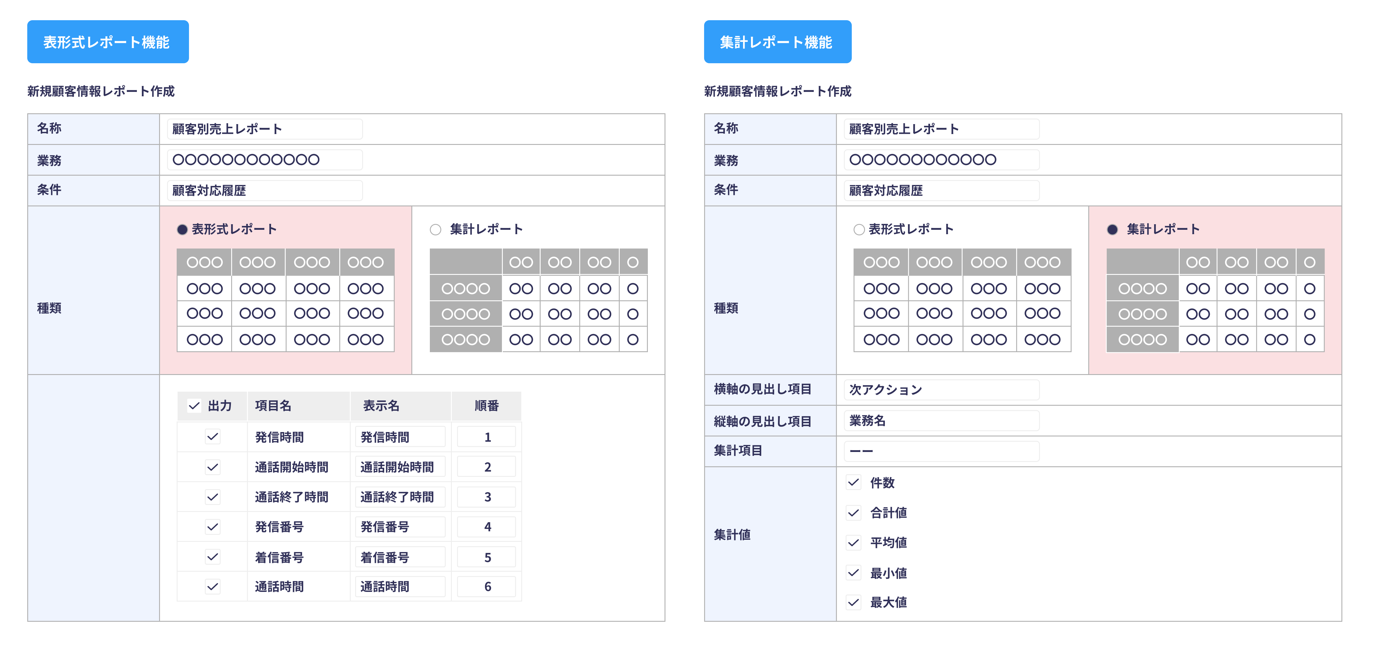 顧客情報レポートの仕様