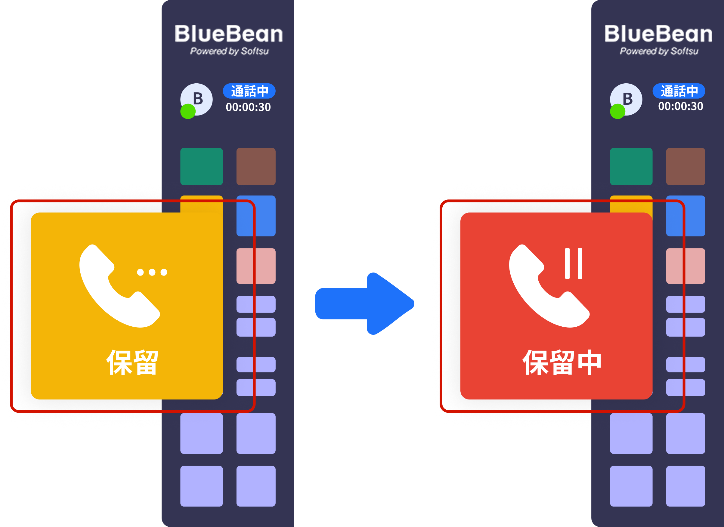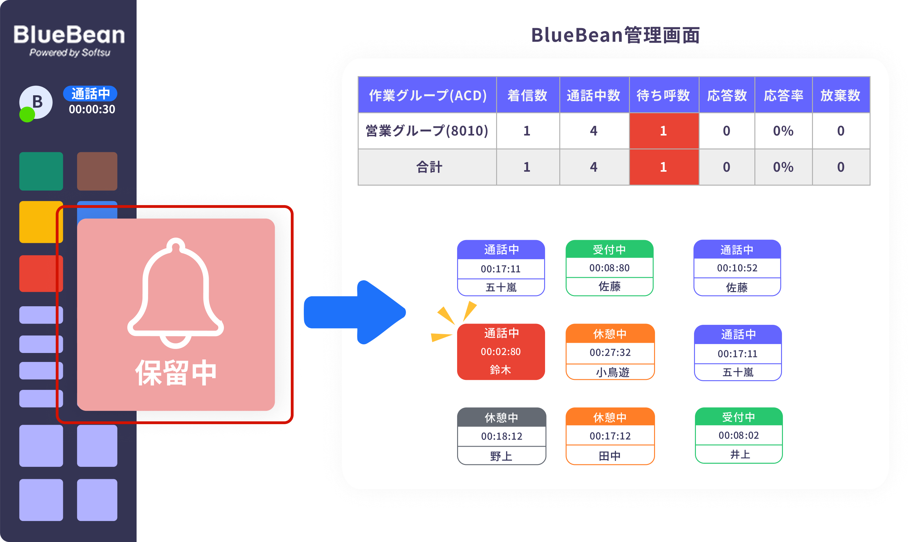 オペレーター画面から保留を行う事ができるので、いちいちソフトフォンを開くわずらわしさがありません。