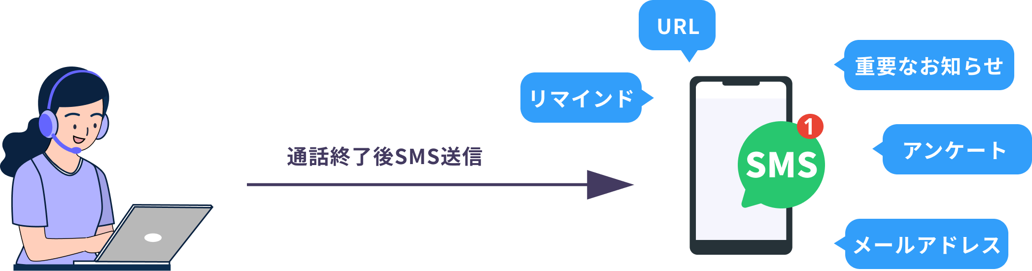 コールセンターでも通話とあわせて以下のような利用シーンでSMSを活用されているセンターも多くあり、顧客満足度向上に一役買っています。
