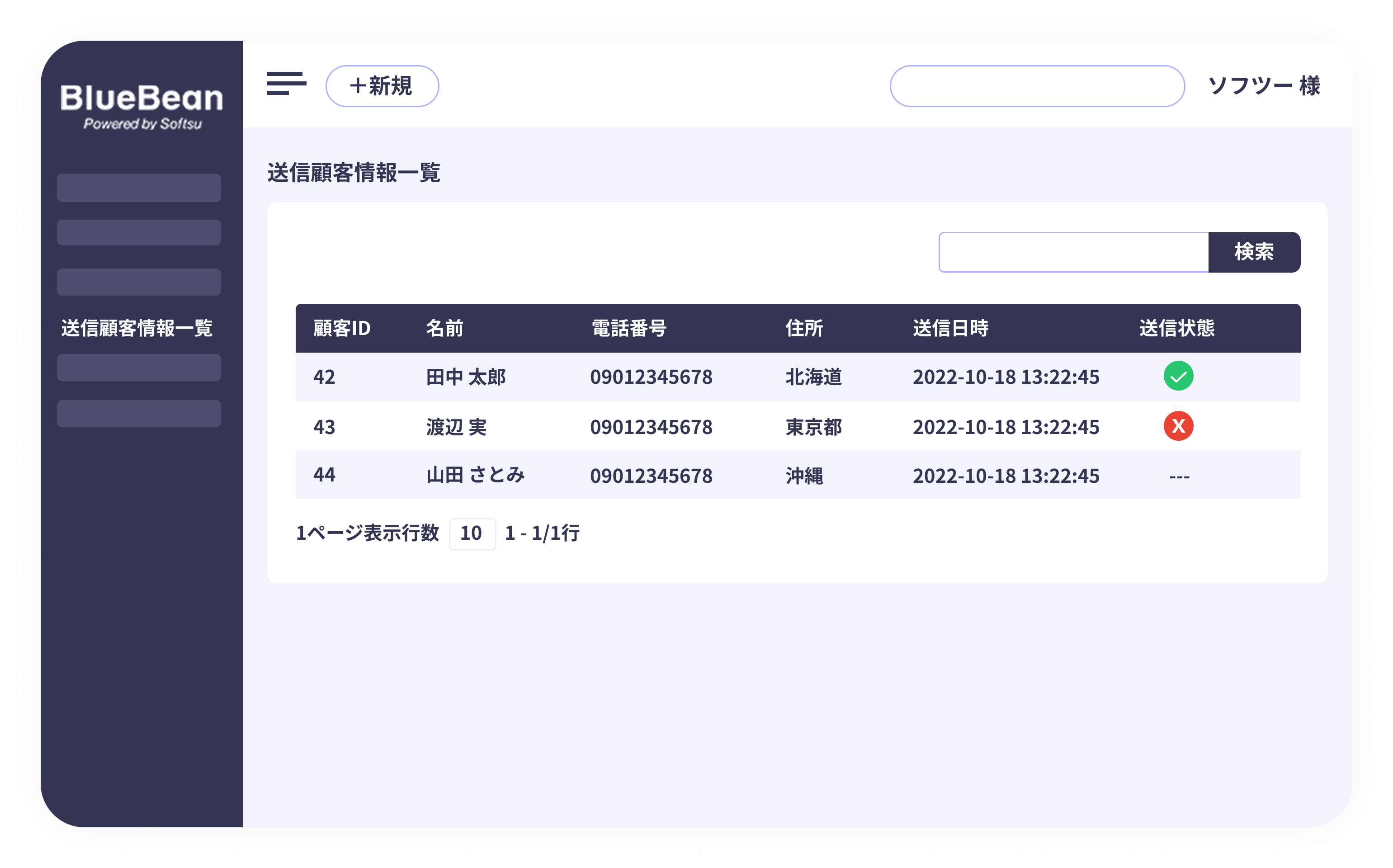 SMS送信機能は、あらかじめBlueBeanに登録された顧客に対して送信することができる機能です。