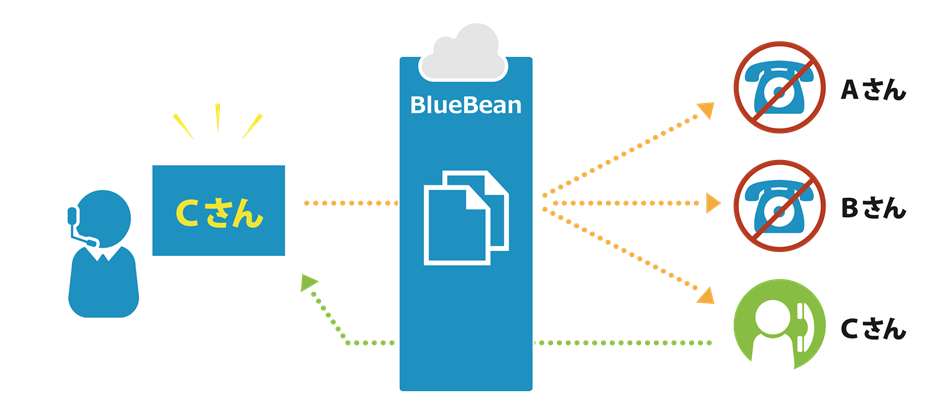 クラウドCTIコールセンターシステムBlueBean(ブルービーン)のアウトバウンドCTI機能は、システムが自動で発信するプレディクティブ発信機能、オペレーターが画面上で顧客情報を確認しながら1件ずつ発信するプレビュー発信(クリック発信) 機能に対応しています。