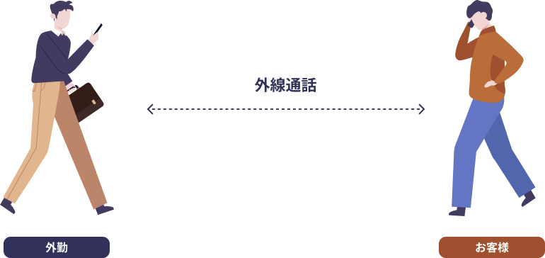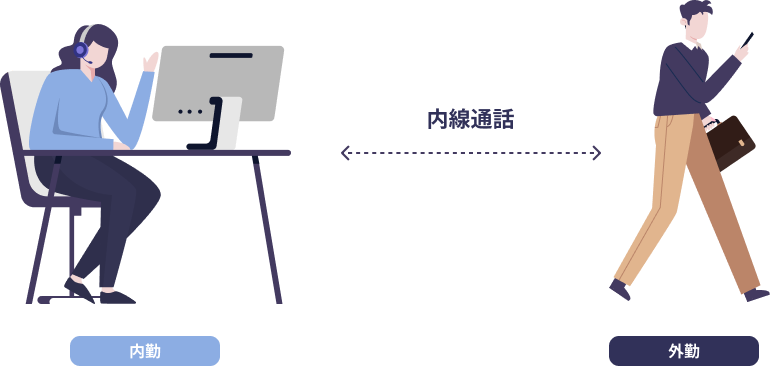 社内にいる担当者から外勤担当へ内線電話をかける場合