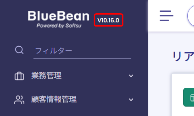 ※バージョンは、BlueBean管理画面の左上に記載があります。